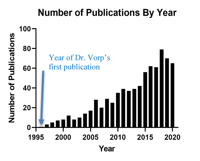 The figure below shows the number of publications on “AAA biomechanics” since the Vorp Lab’s first publication in this area in 1996.